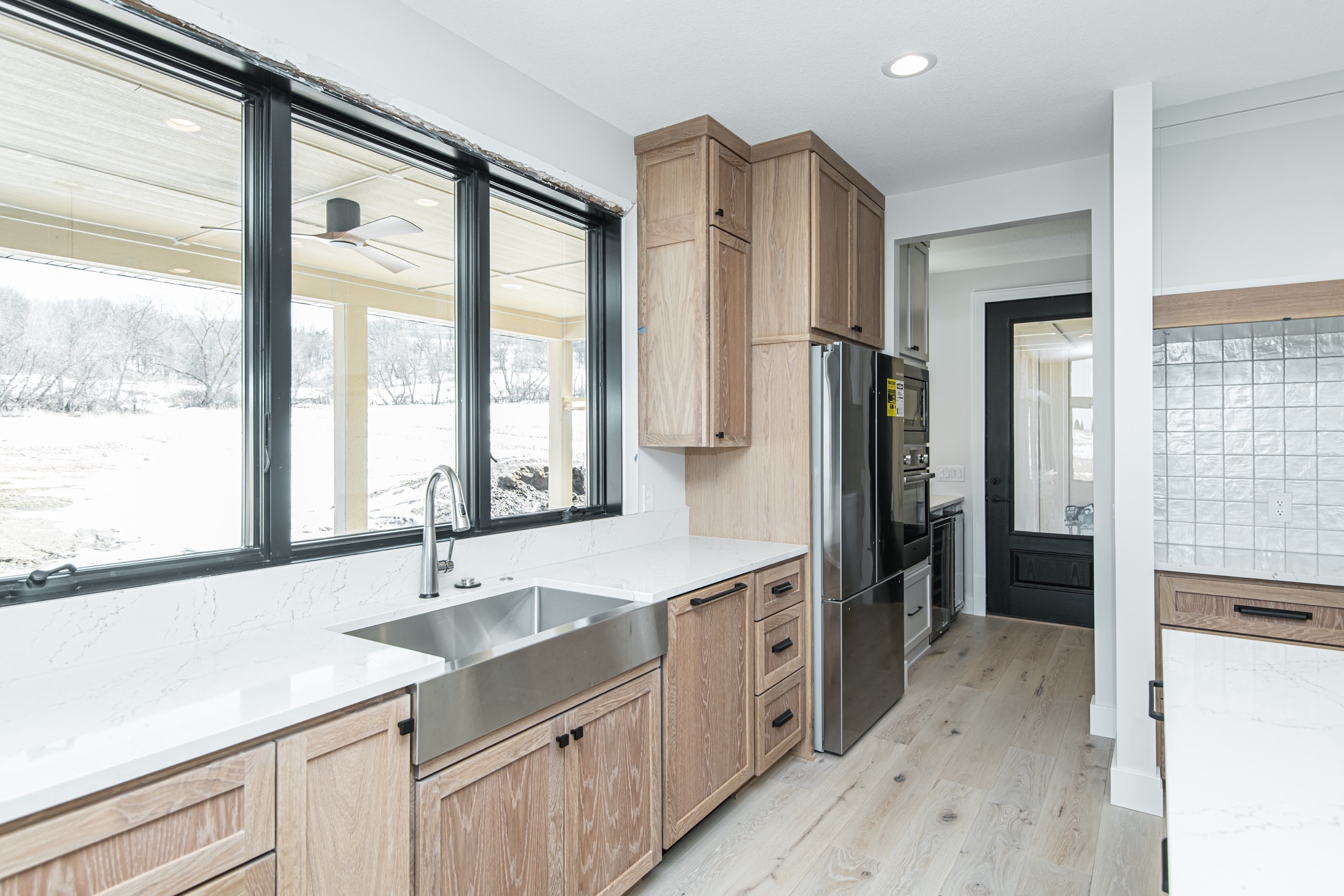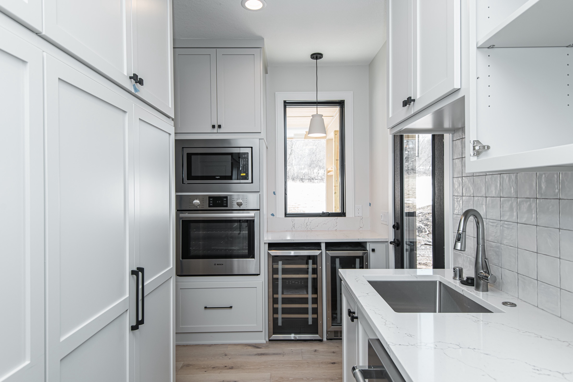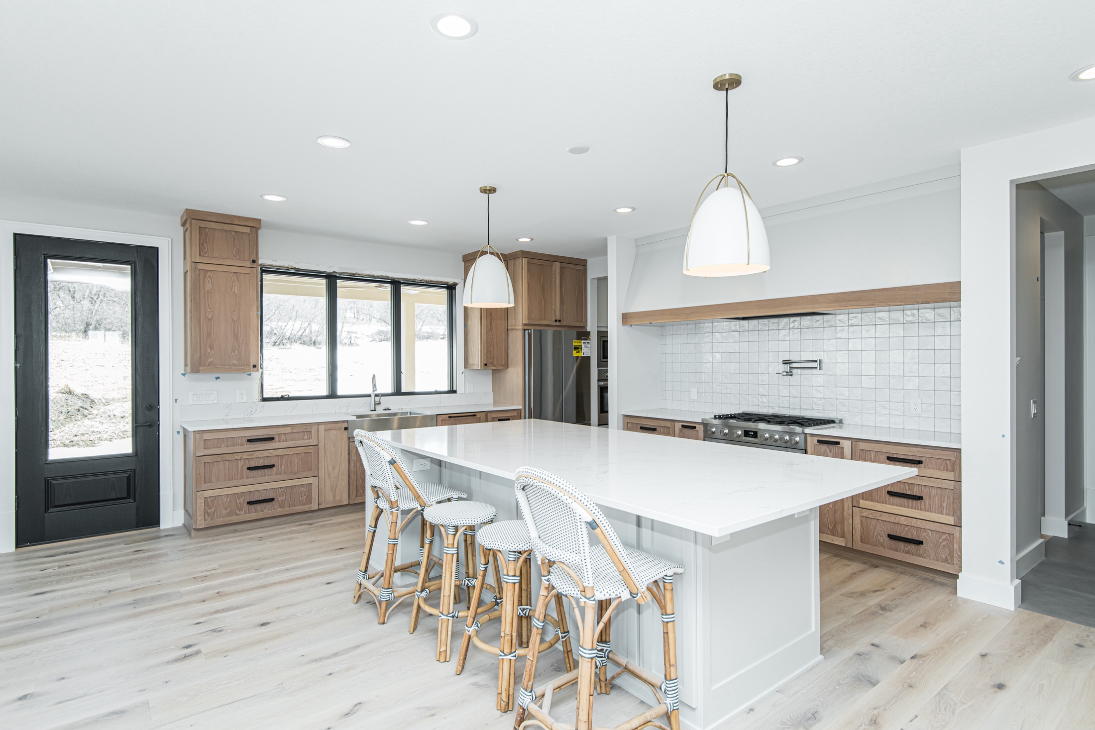 Attention was also given to the plumbing and lighting fixtures as that also sets a tone in design. Delta, Moen, and high-end Kohler fixtures with mixed metals were selected for all levels. More contemporary lighting was mashed with natural walnut finishes to meet that transitional design. Finally, heated tile flooring was a must in the primary and basement bar areas providing comfort on those cold Minnesota days.