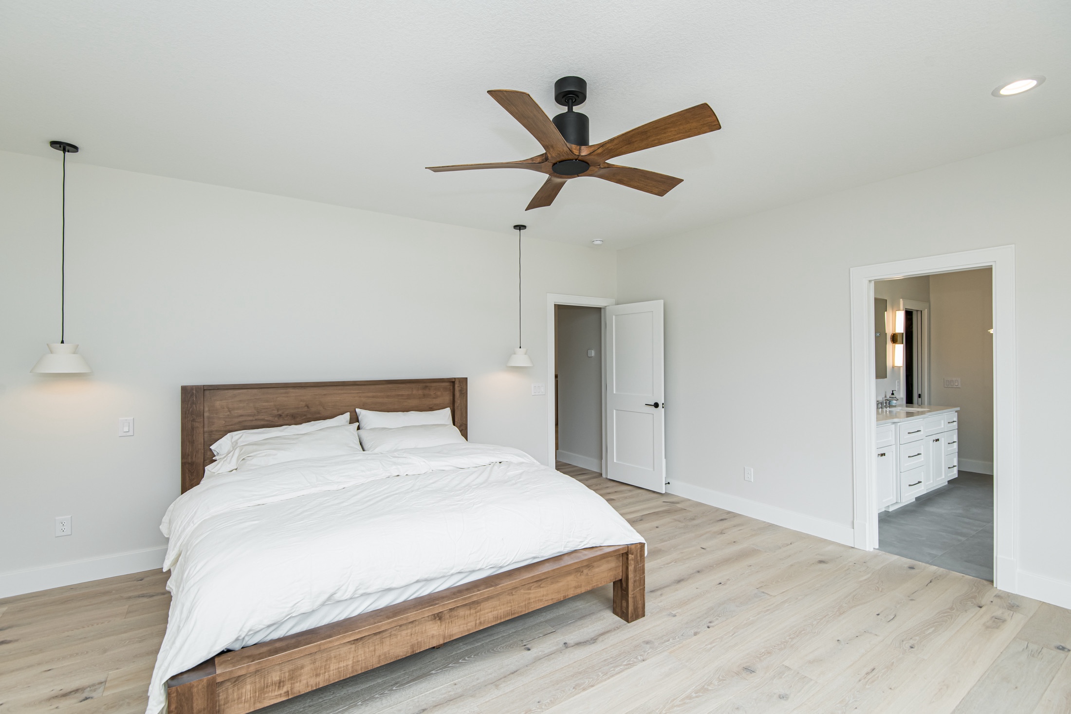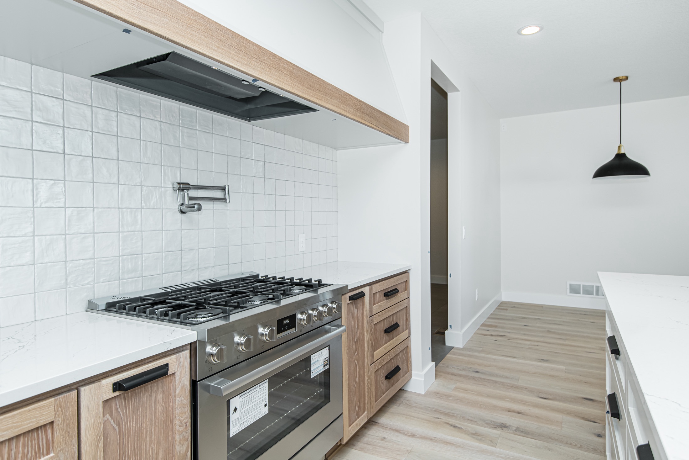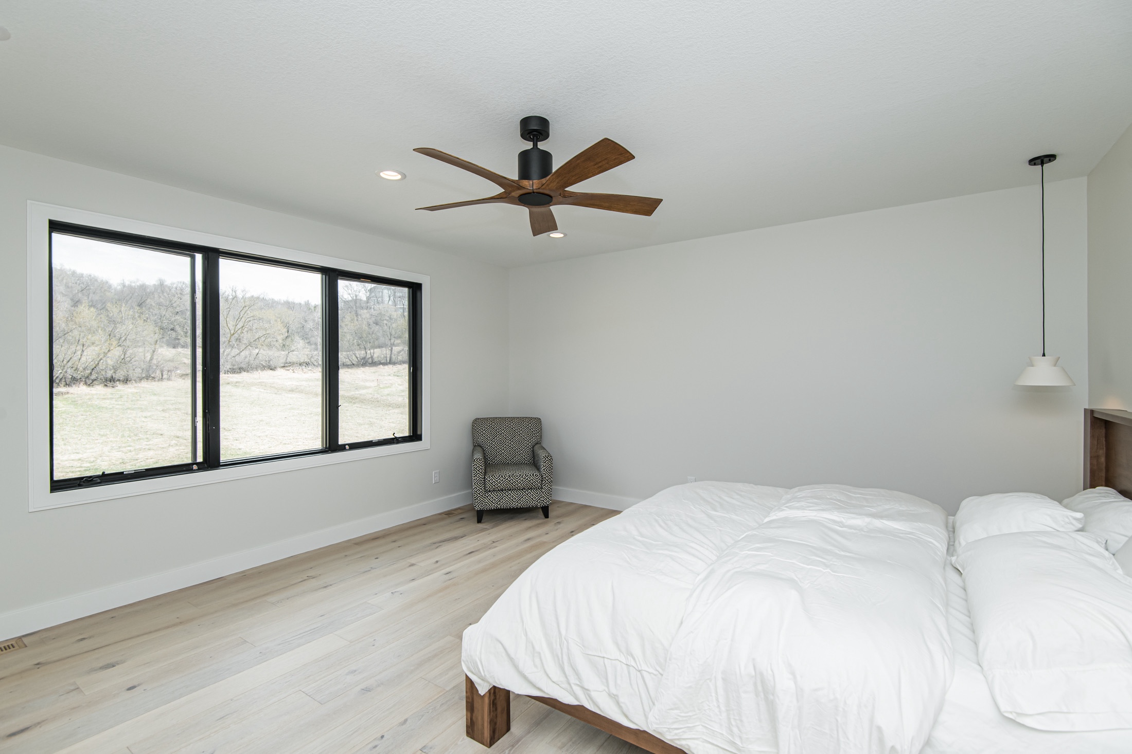 Attention was also given to the plumbing and lighting fixtures as that also sets a tone in design. Delta, Moen, and high-end Kohler fixtures with mixed metals were selected for all levels. More contemporary lighting was mashed with natural walnut finishes to meet that transitional design. Finally, heated tile flooring was a must in the primary and basement bar areas providing comfort on those cold Minnesota days.